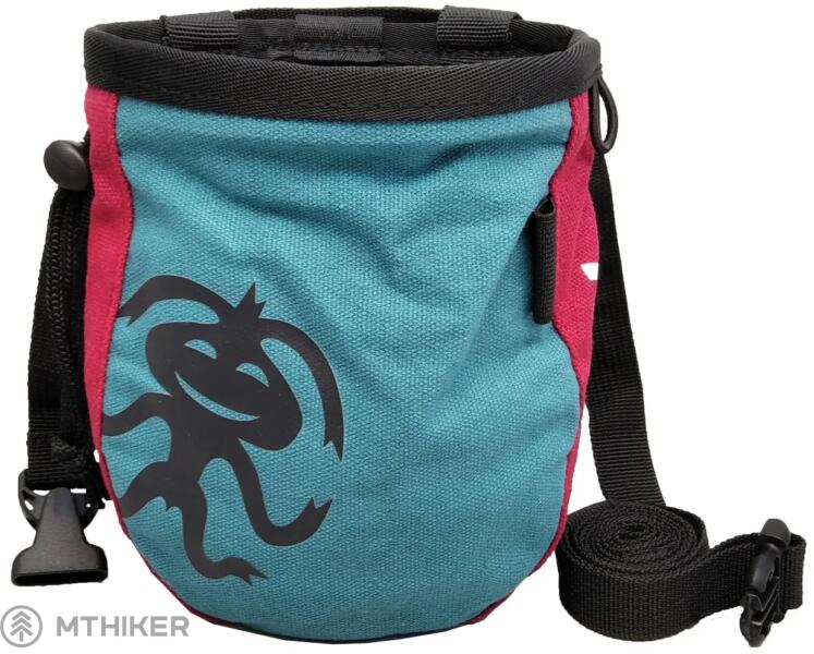 Praktikus magnézium táska klasszikus formában húzózsinórral és jellegzetes "Rafikáčekkel". A táska egy csattal záródó övet is tartalmaz. A dizájnt a "Kevesebb beszéd, több kréta" motivációs felirat egészíti ki. Természetesen van egy fűzőlyuk is a tartók tisztítására szolgáló keféhez. Tehát kösd be a biztonsági övet, vedd fel a mászócipőt, kapcsold fel a Rafika maglajzákot és irány a következő függőleges!